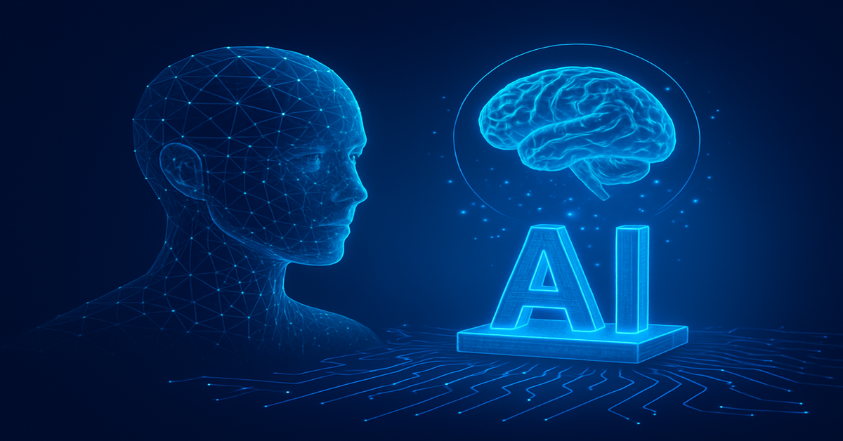 Foto destaque: Representação abstrata de IA Generativa em forma de cérebro e figura humana digital (Imagem gerada por Inteligência Artificial)